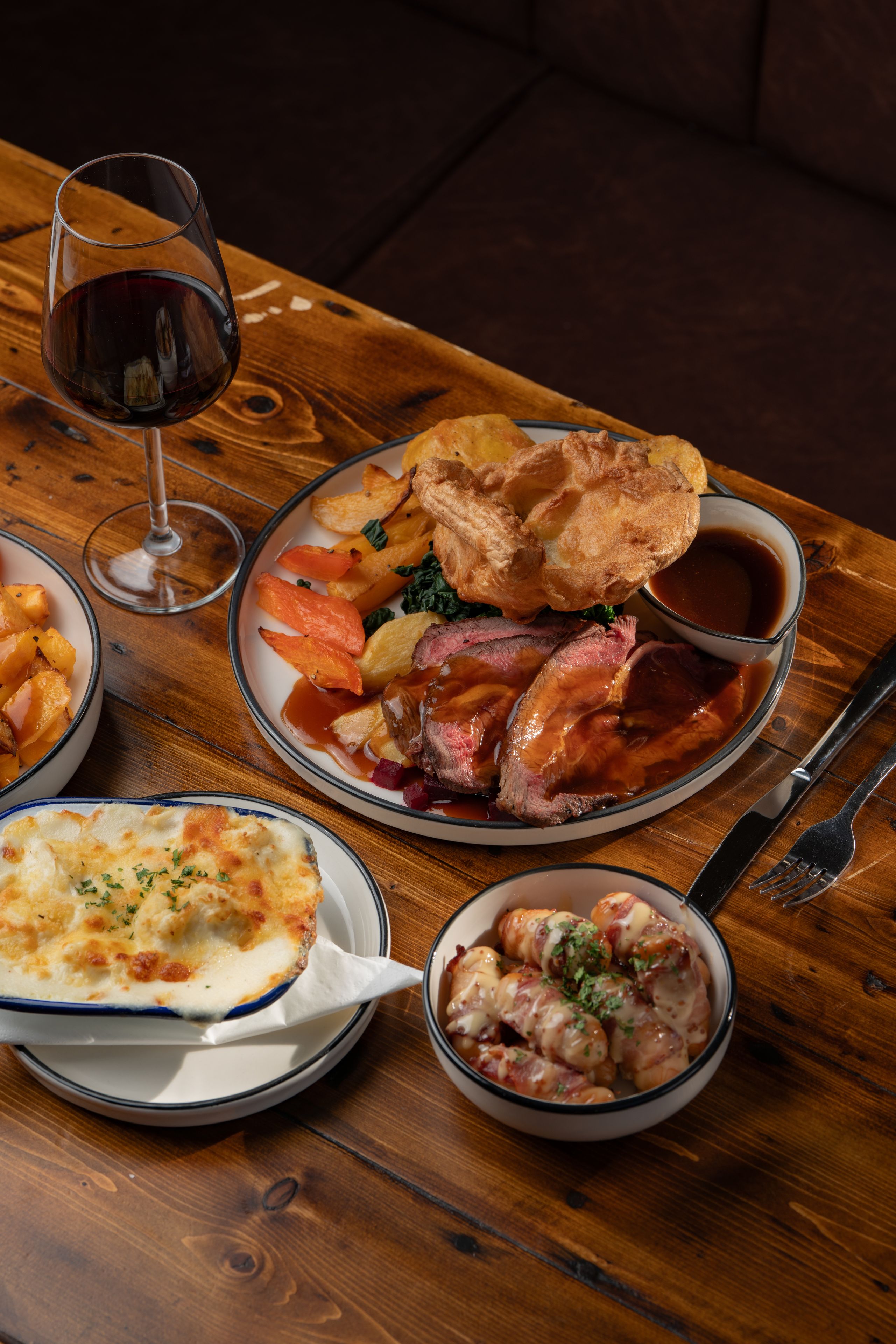 We use the best butchers cuts of meat, served alongside all the classic trimmings. Enjoy crispy roast potatoes, fluffy Yorkshire puddings, locally sourced seasonal vegetables and your choice of delicious sauces and gravy.